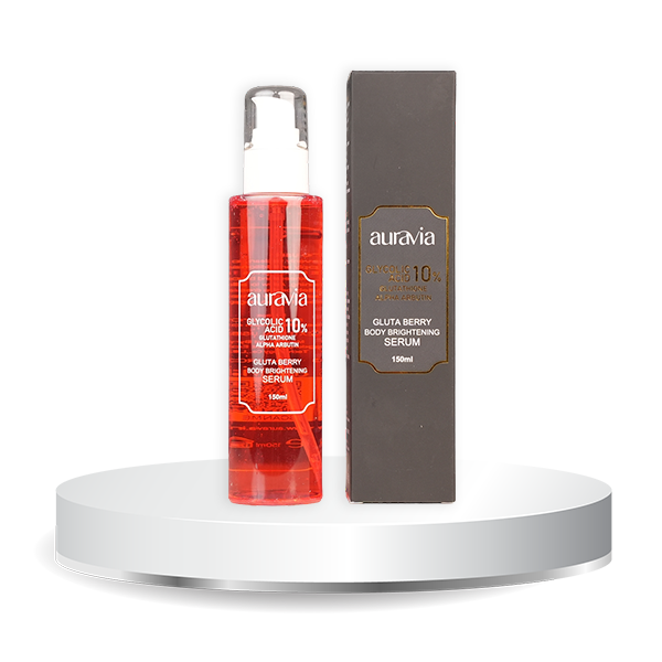 Auravia Gluta Berry Body Brightening Serum is a lightweight, non-sticky formula designed to enhance your skin’s natural glow. Powered by Glutathione and antioxidant-rich Berry extracts, it helps brighten dull skin, reduce uneven tone, and improve overall skin clarity. With regular use, the serum deeply nourishes the skin, leaving it soft, smooth, and visibly radiant. Suitable for daily use on all skin types.